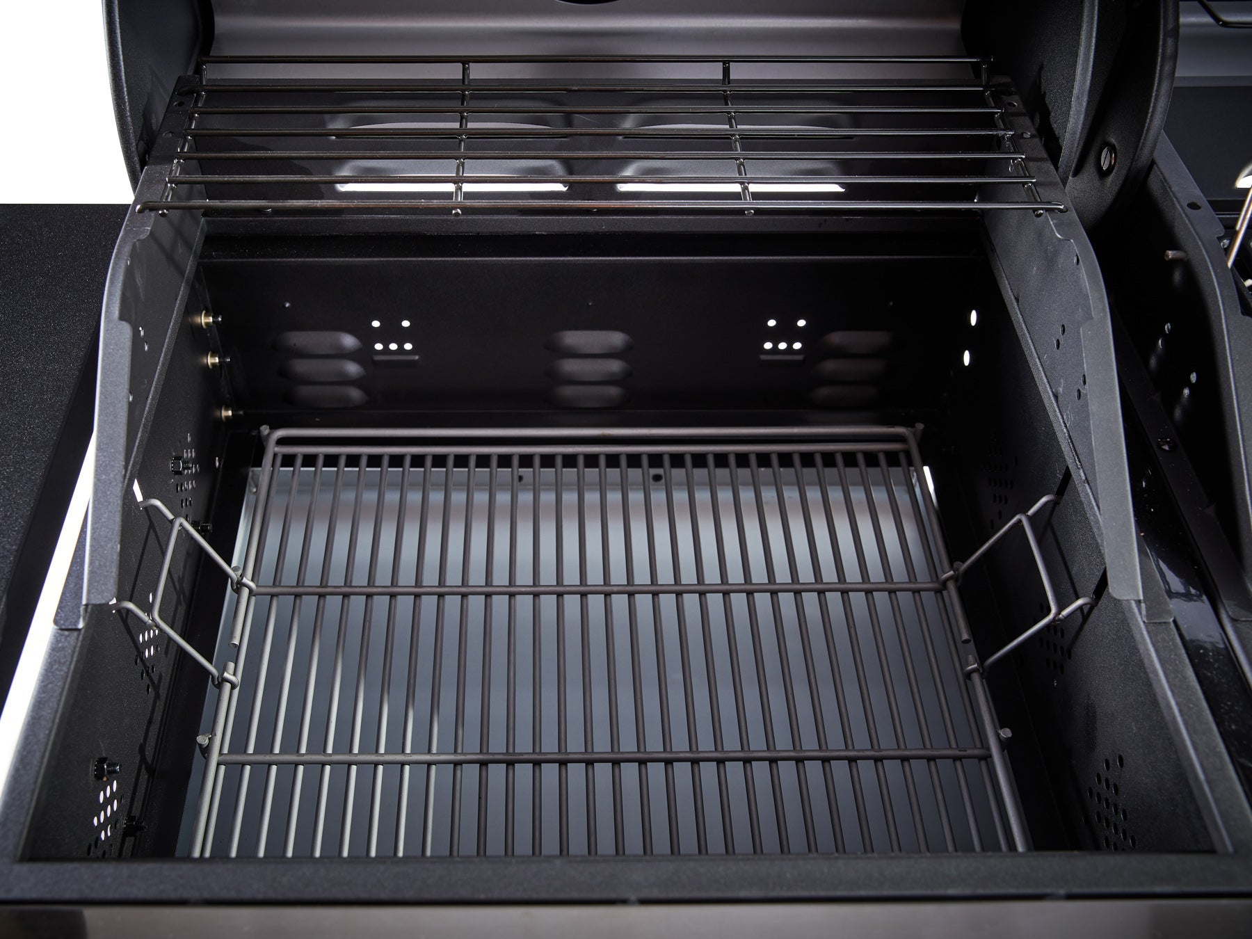For the ultimate choice of outdoor entertaining, the Outback Dual Fuel 4 burner gas and charcoal combi barbecue offers the chance to impress a sizeable party of guests with a traditional charcoal-cooked menu, or a gas-fired selection that is sure to keep up with demand. It comes with porcelain-enamel roasting hoods, 2 cast iron grills, adjustable warming racks, side tables, air vents, piezo ignition and bottle opener function. Dual Fuel 2 Burner is supplied with hose and propane regulator.